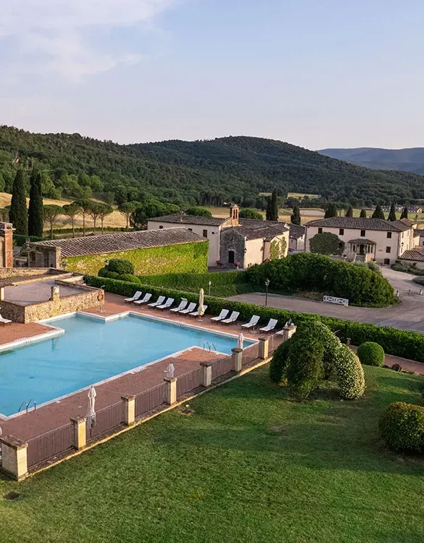Toscanan sydämessä, noin 12 kilometrin päässä Sienan kaupungista. Lähin lentokenttä on Firenze-Peretolan lentokenttä, jonne on noin 90 kilometrin matka.