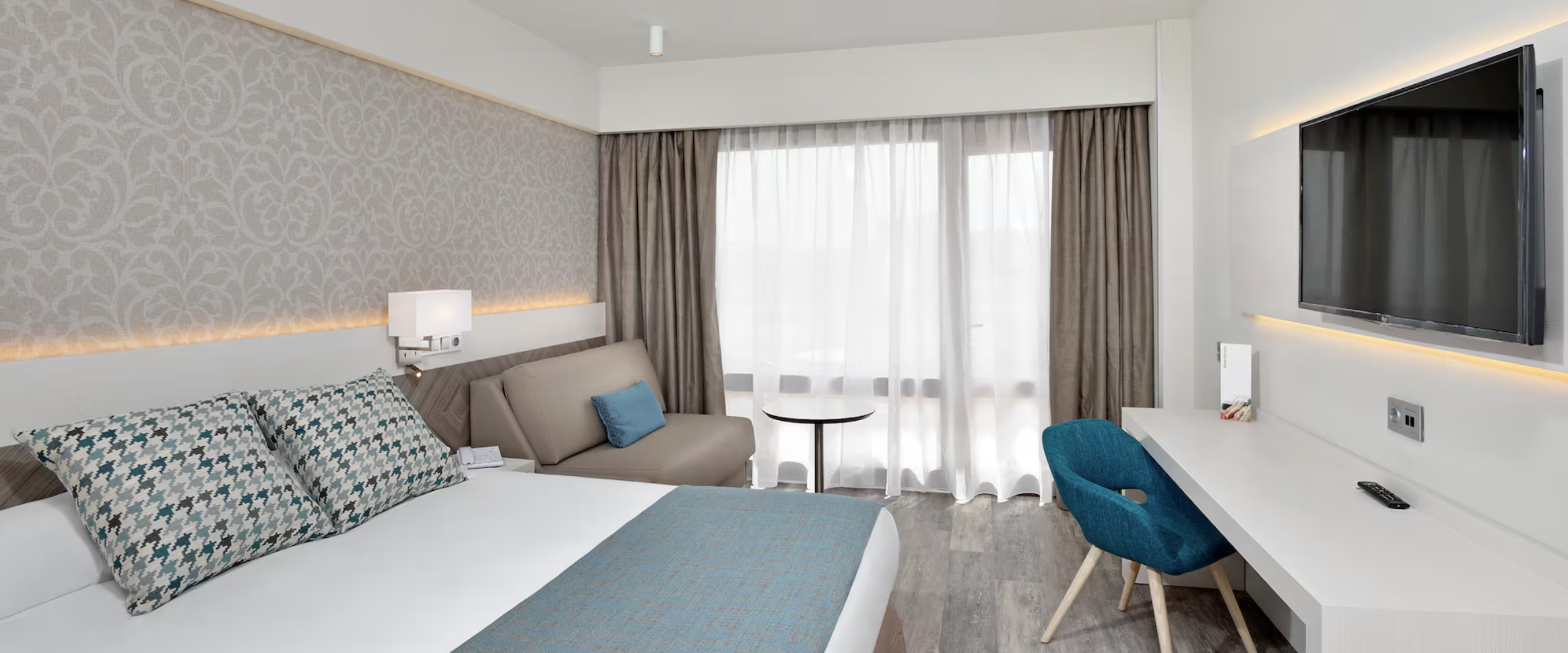 Majoitusvaihtoehtoja on runsaasti: viihtyisistä standard- ja superior-huoneista aina tilaviin sviitteihin, joissa on erillinen olohuone. Kaikissa huoneissa on parveke tai terassi sekä modernit mukavuudet, kuten ilmastointi ja ilmainen Wi-Fi.